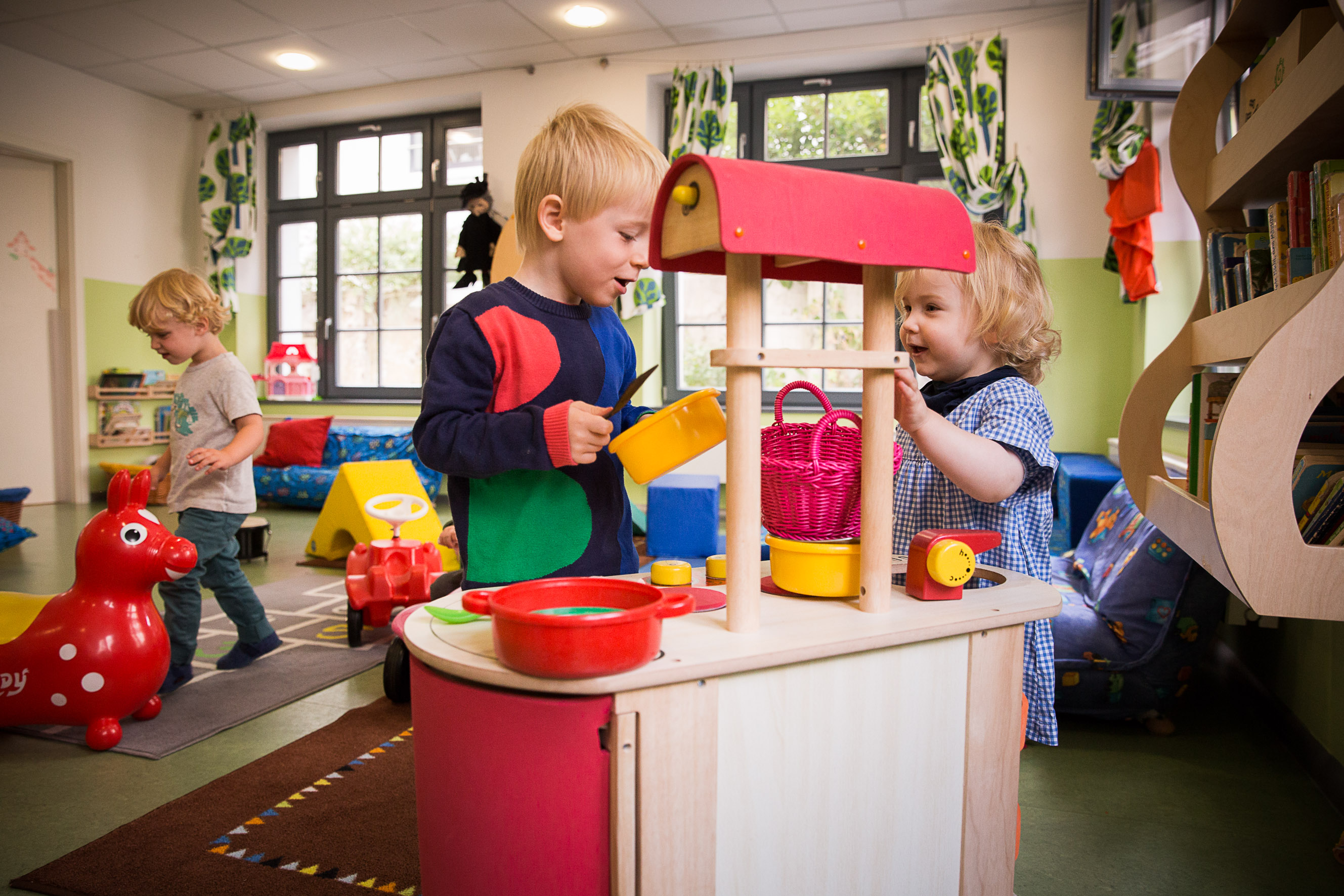 So oft es möglich ist, gehen wir mit den Kindern an die frische Luft. Wenn wir mit unseren großen 6er-Wagen zu einem der zahlreichen nahegelegen Spielplätze rollen, finden unsere Kleinen unterwegs immer wieder interessante Dinge zum Beobachten. (Müllabfuhr, Blumen…). Auch auf dem nahe gelegenen Goldbekmarkt gibt es viel zu entdecken. Manchmal gibt es sogar Pommes und Würstchen für alle.